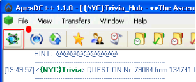 • Faceti click pe glob dupa cum arata in imaginea de mai jos si vi se va deschide lista de huburi adaugata de dumneavoastra mai devreme sau cele default pe care le avea programul încă de la instalare. Se poate intra pe huburi foarte simplu, facand click pe cel care doriti. Iar daca cunoasteti dumneavoastra o aderesa de hub o puteti adauga tinand apasat pe tastatura „Ctrl+Q“ (tastele „Ctrl“ si „Q“ in acelasi timp).