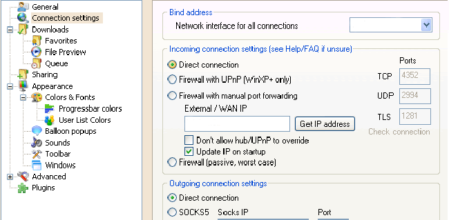 • 2 Al doilea pas în configurare este setarea conexiunii . Selectaţi „ Connection Settings “ acolo cel mai indicat este sa bifati „ Direct Connection “, iar daca folositi un firewall bifati „ firewall connection (passive, worst case) “ , însă dacă aţi selectat cel din urmă punct atunci căutările dumneavoastră pe apex dc vor fi limitate, şi anume, sursele găsite vor fi doar cele asemănătoare cu ale dumneavoastră. (mai exact: veti putea căuta doar la utilizatorii pasivi). Dacă aveţi router este necesar să il configuraţi corect ca să fiţi utilizatori activi şi în acest fel să puteţi downloda de la toţi utilizatorii.